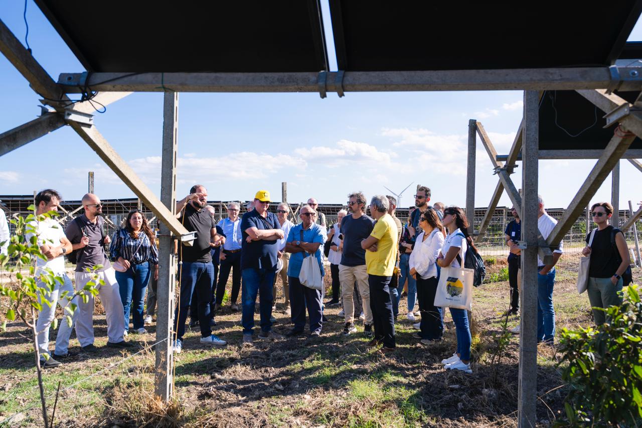 La giornata si è aperta con la lezione a cielo aperto “A scuola di agrivoltore”, curata da Giuseppe Ferrara dell’Università di Bari (UniBa), seguita da una visita tecnica dedicata a configurazioni, sistemi di monitoraggio e scelte operative.
