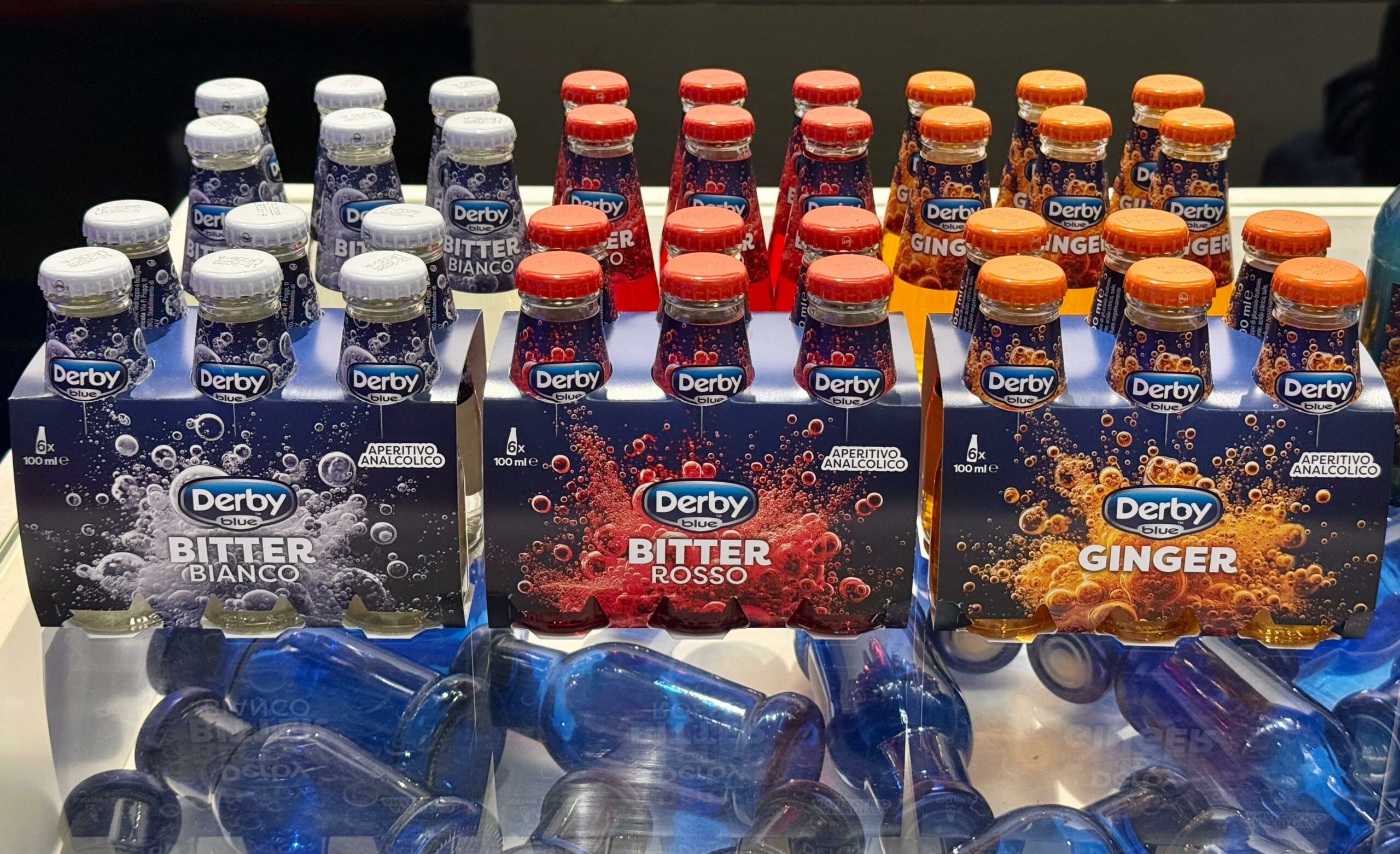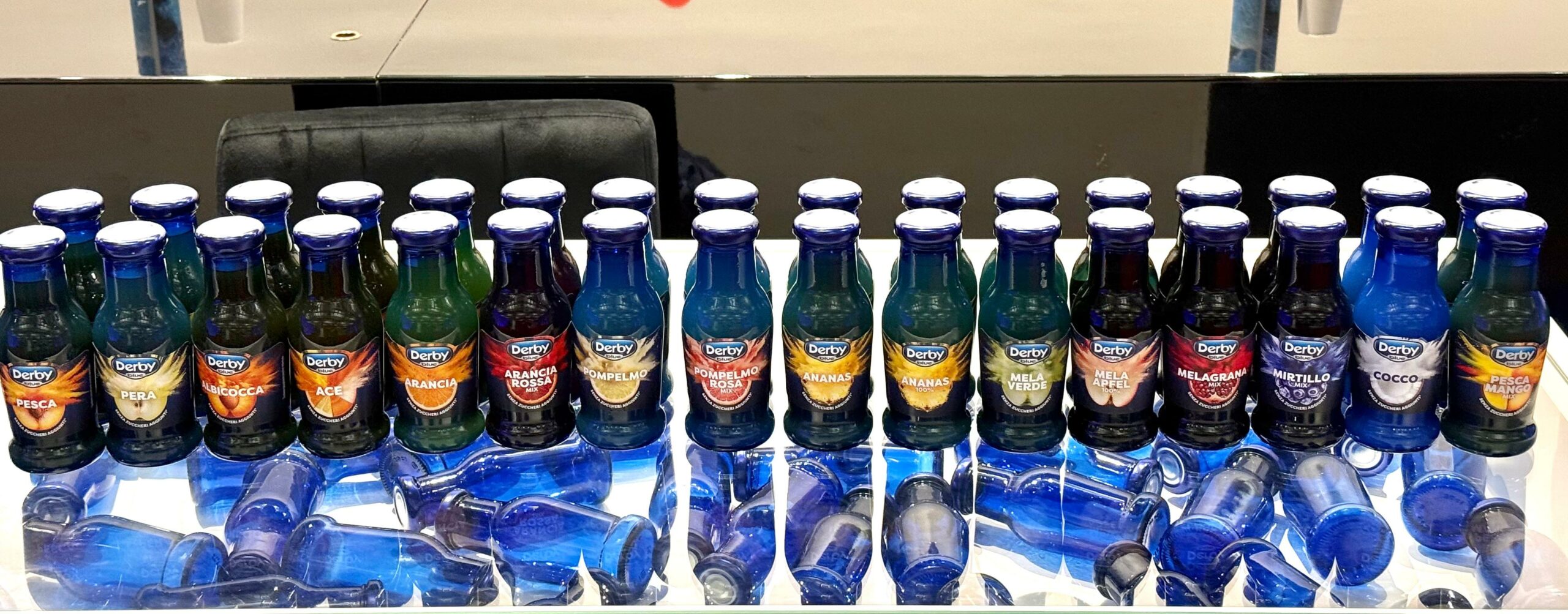 Il lancio si accompagna a un rinnovamento più ampio del portafoglio. Le bottiglie da 200 ml dei succhi esistenti si aggiornano con una nuova etichetta, in anticipo su una revisione del packaging prevista per il 2027. I bitter analcolici — rosso, bianco e ginger, in precedenza commercializzati come Bitter Salfa — vengono contestualmente integrati sotto il marchio Derby Blue, prodotti negli stabilimenti di Conserve Italia tramite infusione idroalcolica su erbe selezionate, tra cui l’assenzio romano e altre varietà di provenienza europea.