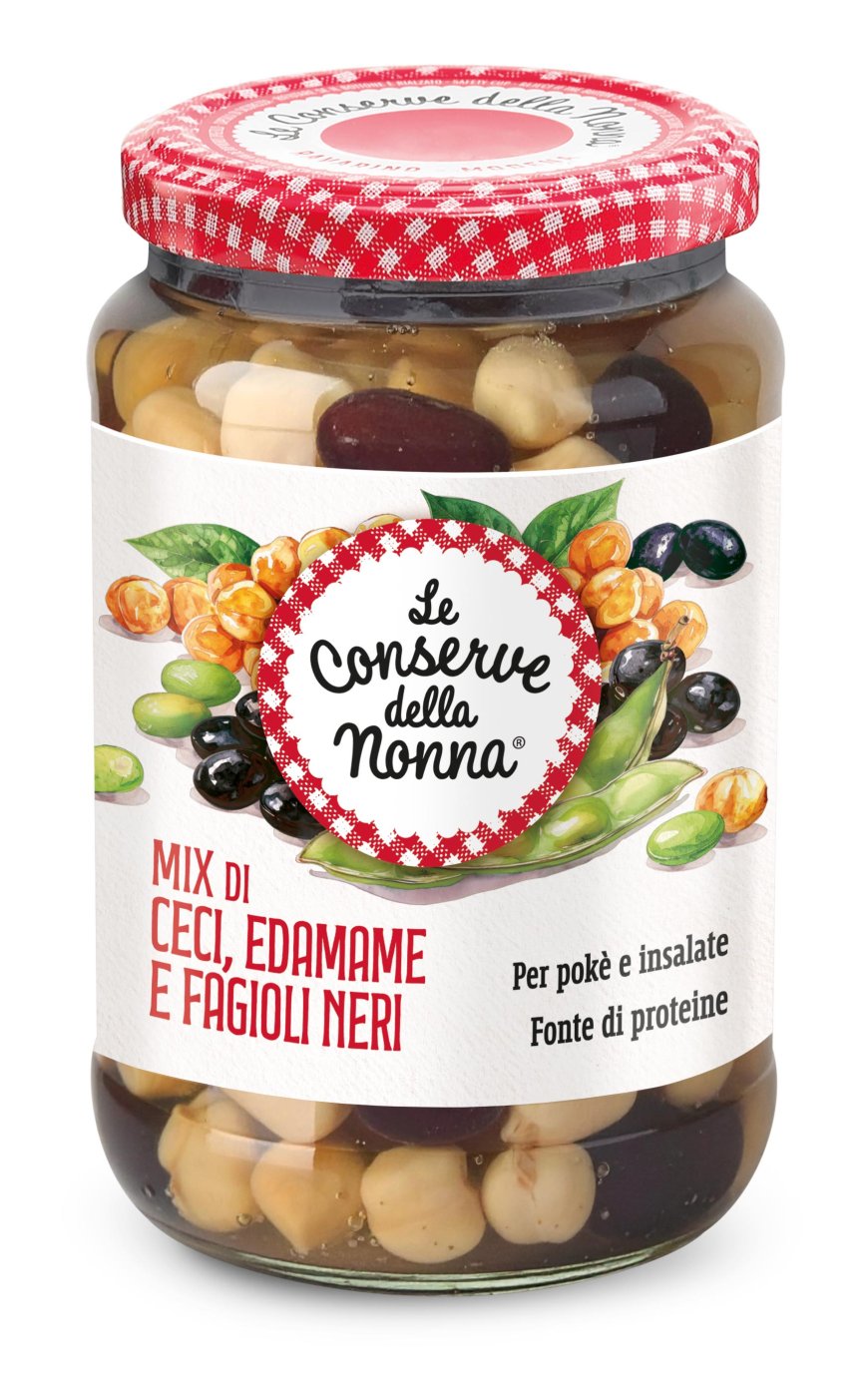 Le altre due novità riguardano la gamma mix. Il Mix di Borlotti, Ceci e Tondini aggiorna l’attuale “Armonia di Legumi” con nuova denominazione e grafica rinnovata, mantenendo la vocazione per zuppe, minestre e piatti caldi. Il Mix di Ceci, Edamame e Fagioli Neri si distingue per l’inclusione dell’edamame, ingrediente che orienta la proposta verso insalate, poké e piatti freddi, pur restando adatta anche a preparazioni calde. Entrambe le referenze condividono lista ingredienti corta, ricetta pulita e indicazioni specifiche di utilizzo.