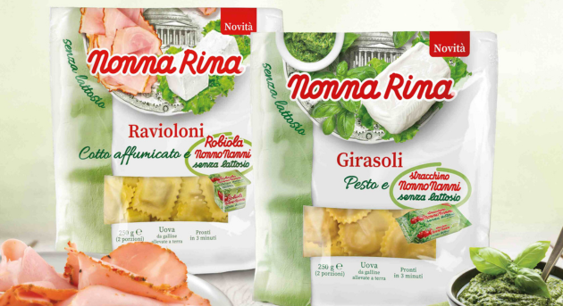 Il marchio Nonna Rina, espressione del gruppo Nonno Nanni nel segmento della pasta fresca, amplia la propria offerta con il lancio della linea senza lattosio. Due le referenze: Girasoli Pesto e Stracchino Nonno Nanni da 250 g e Ravioloni Cotto affumicato e Robiola Nonno Nanni da 250 g, entrambe caratterizzate dalla presenza dei formaggi freschi Nonno Nanni senza lattosio nel ripieno.