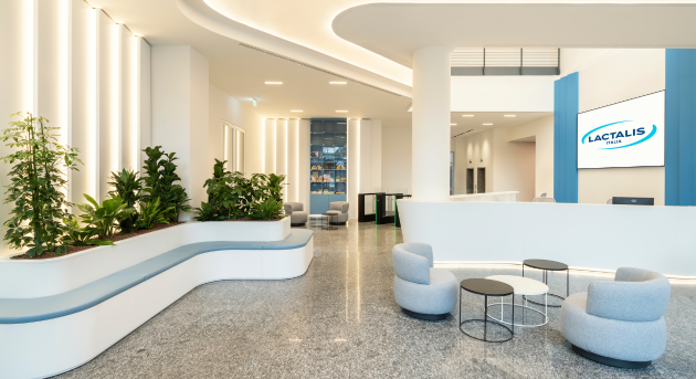 La struttura, frutto della riqualificazione di un edificio in zona Romolo, è stata concepita per riunire in un’unica sede persone, funzioni e brand, favorendo un’organizzazione più integrata ed efficiente. Lo studio Lombardini22 ha progettato gli spazi secondo un modello flessibile e contemporaneo, con uffici prevalentemente in open space e alcune aree dedicate alla collaborazione, alla comunicazione e alla rappresentanza, coerenti con l’identità e i valori del gruppo. La sede comprenderà un bar e un negozio con i prodotti Lactalis dal mondo, accessibili al pubblico, e sarà sede di attività per la popolazione aziendale e di eventi aperti al pubblico con la partecipazione dei partner di Lactalis.