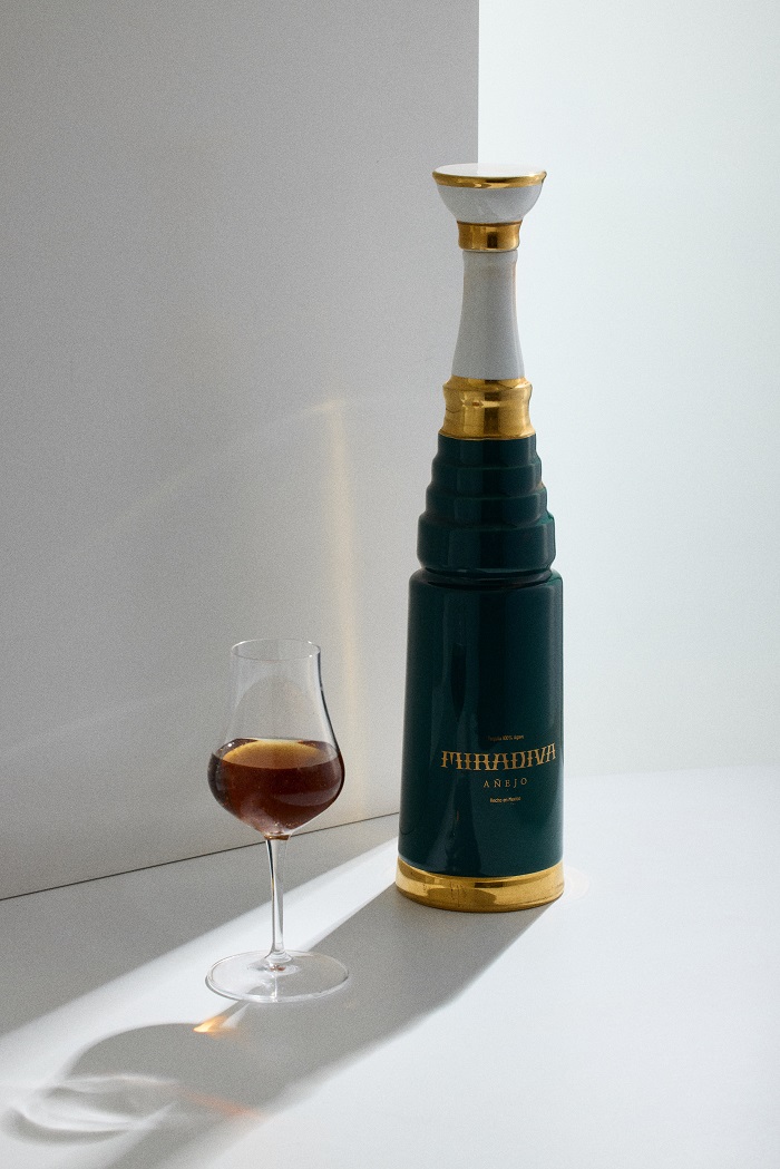Non meno importante è il design delle bottiglie di Miradiva, un perfetto equilibrio tra tradizione e modernità. Ispirate agli stilemi iconici della cultura e dell’architettura messicana, le bottiglie sono realizzate con l’aiuto di tecnologie avanzate, come l’intelligenza artificiale, che ha reinterpretato i motivi classici. Ogni bottiglia è decorata a mano con dettagli in oro, che conferiscono un tocco di lusso ed esclusività. La ceramica, creata dai maestri artigiani di Jalisco, riflette la maestosità delle antiche architetture messicane, facendo di ogni bottiglia di Miradiva un’opera d’arte unica.